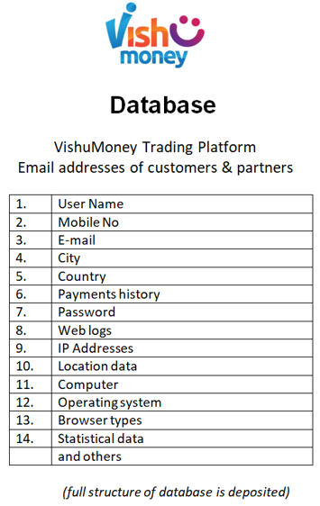 Database: VishuMoney Trading Platform Email addresses of customers & partners