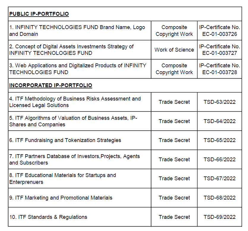 Consolidated Composite Copyright Work: ’INFINITY TECHNOLOGIES FUND Business Assets, Methodologies and Intellectual Databases'