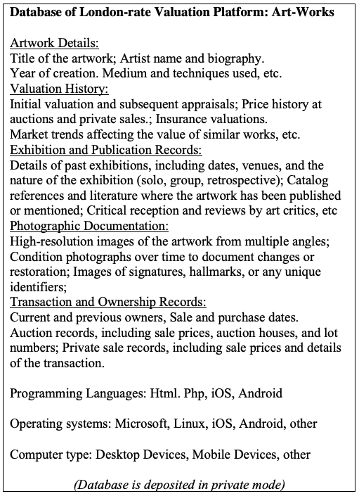 Database: Database of London-Rate Fintech Valuation Platform: Art-Works