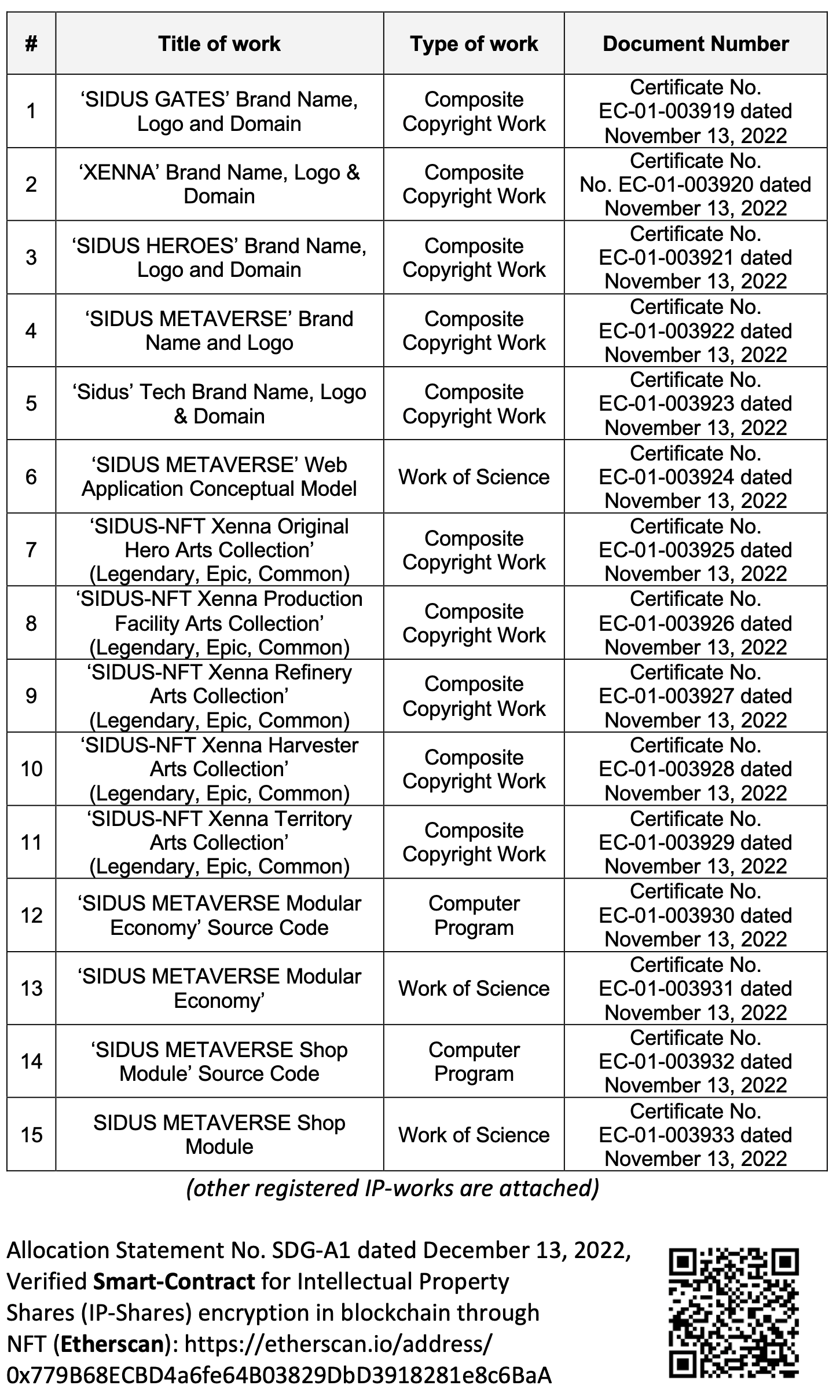 Consolidated Composite Copyright Work: ‘Sidus Business Technologies and Digital Assets’ v.1.0.