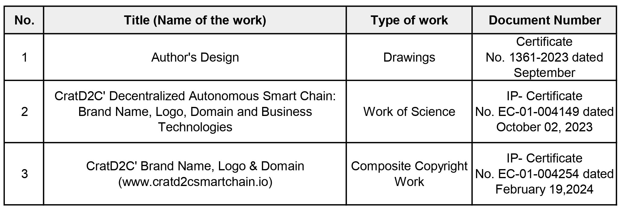Consolidated Composite Copyright Work: Business Technologies and Intellectual Assets of 'CratD2C' Business Project