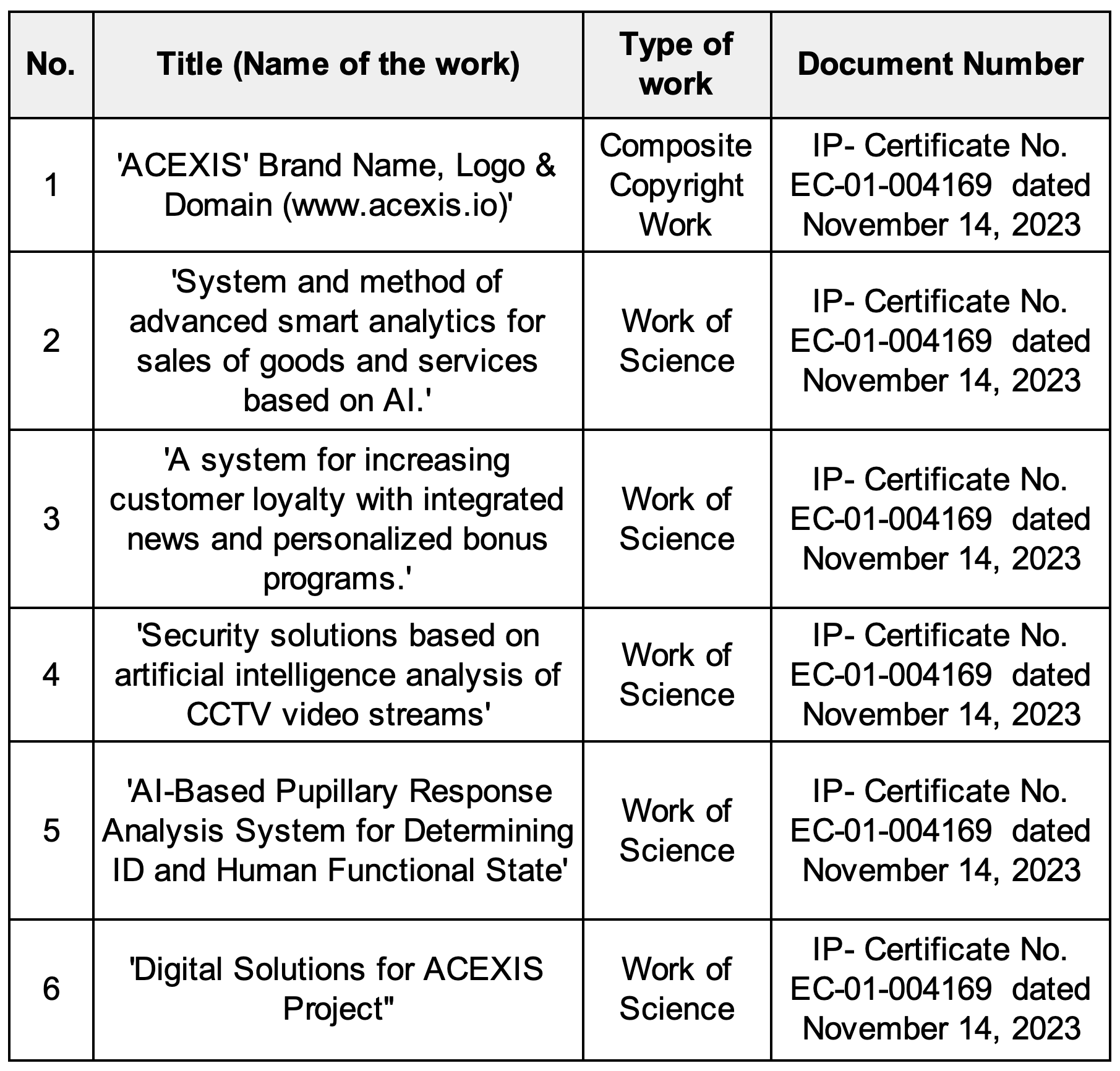 Consolidated Composite Copyright Work: "ACEXIS" Business Technologies and Intellectual Assets