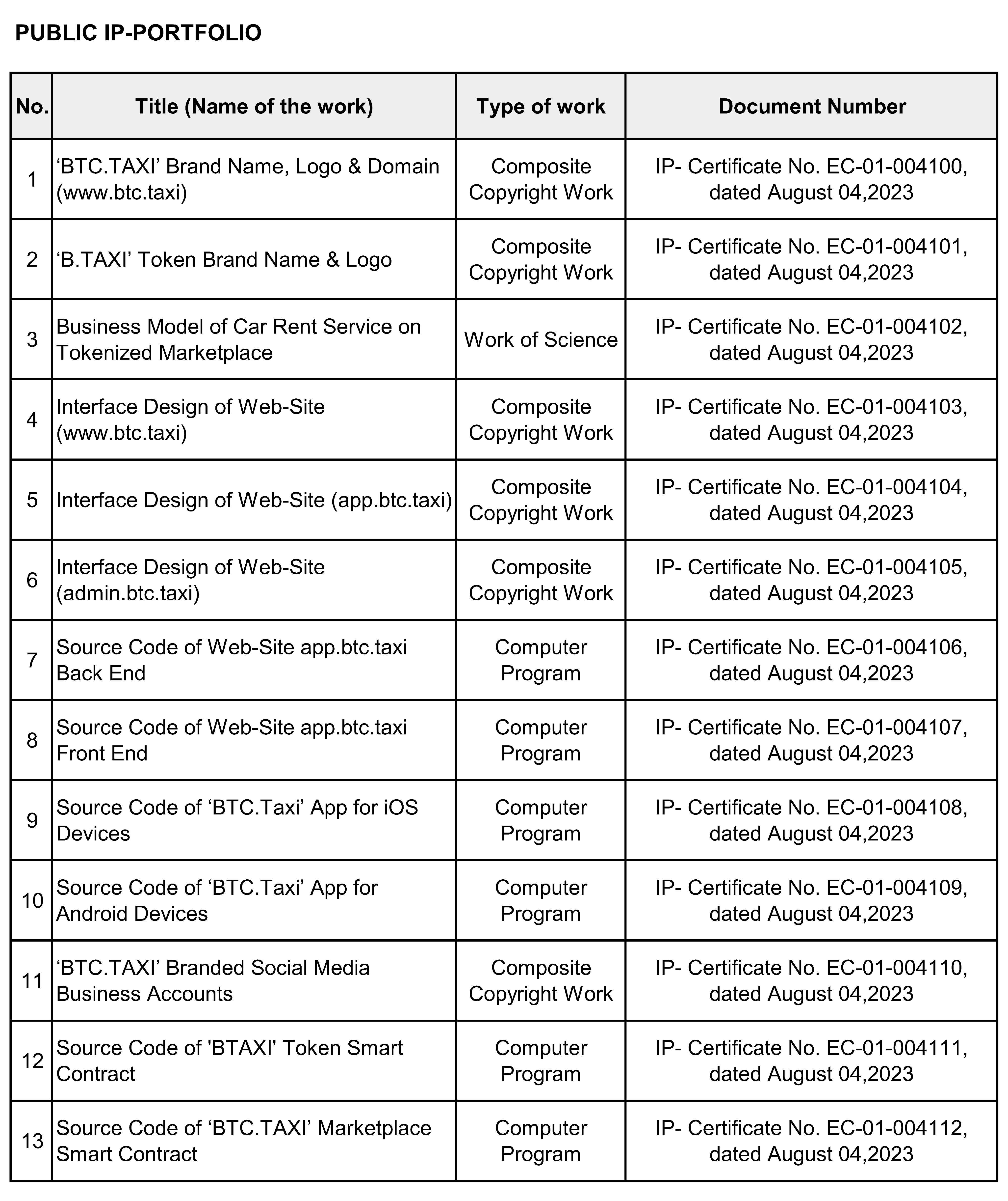 Consolidated Composite Copyright Work: 'BTC.TAXI' Business Technologies and Intellectual Assets