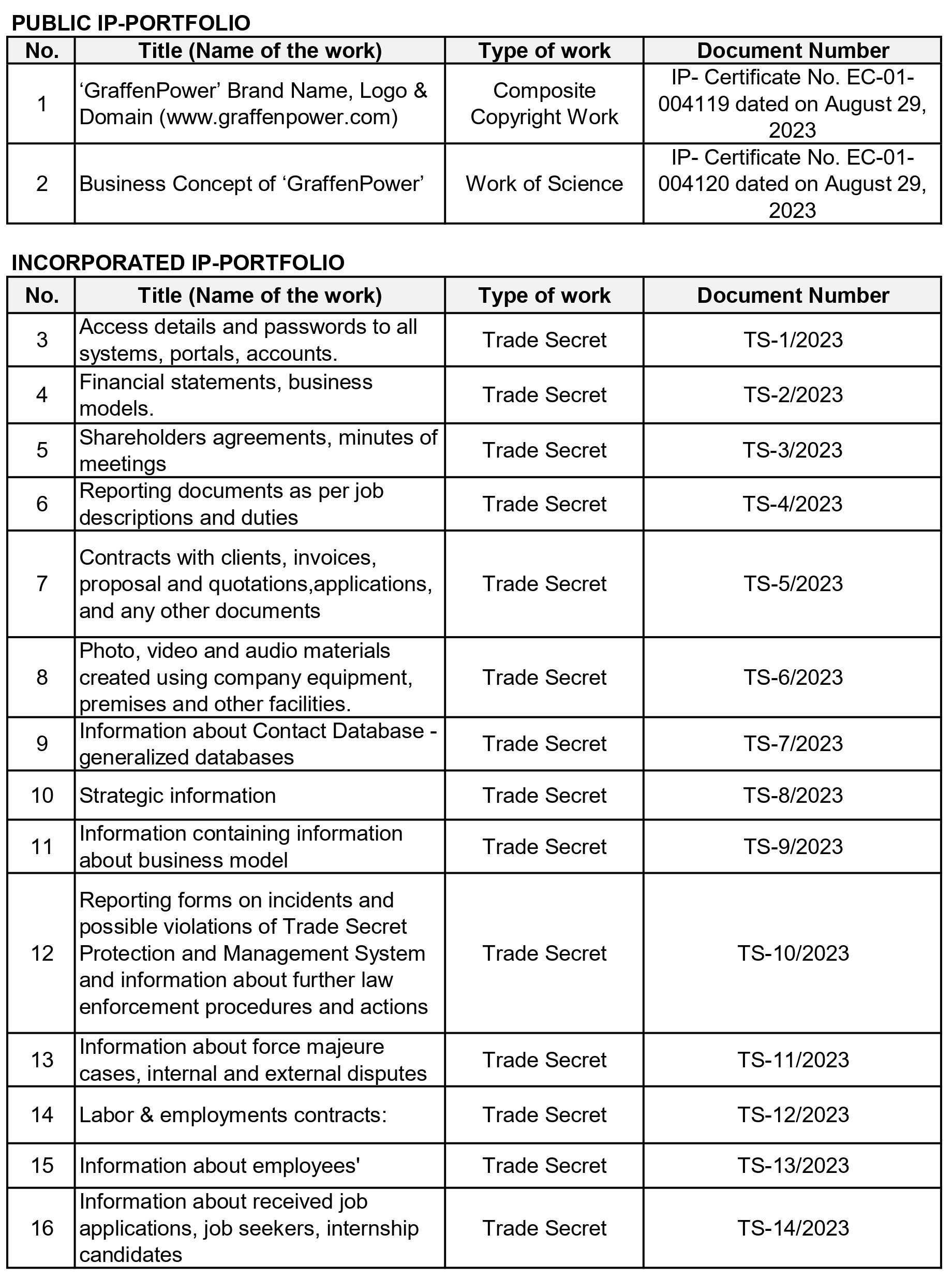 Consolidated Composite Copyright Work: 'GraffenPower' Business Technologies and Intellectual Assets