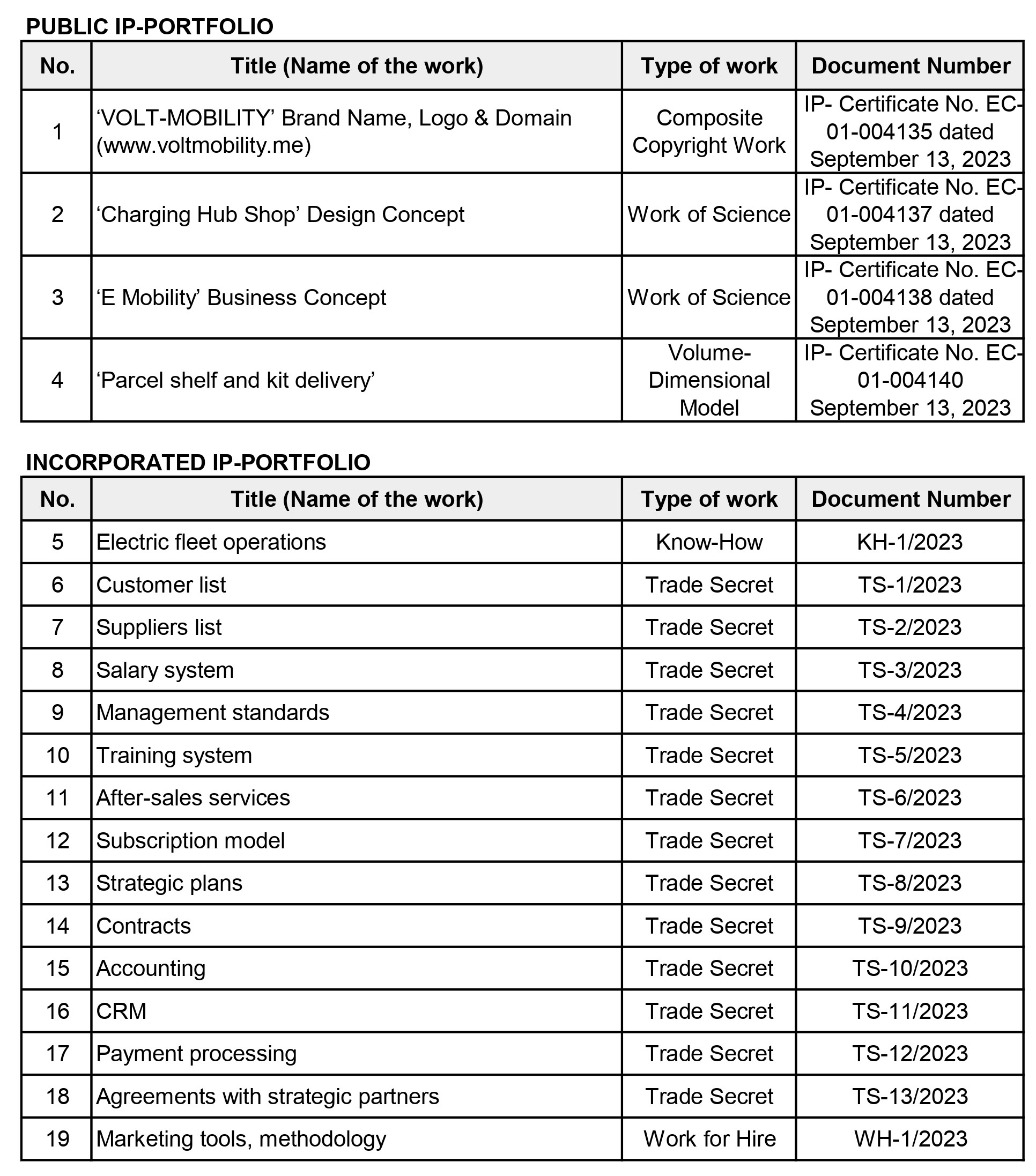 Consolidated Composite Copyright Work: 'VOLT-MOBILITY' Business Technologies and Intellectual Assets