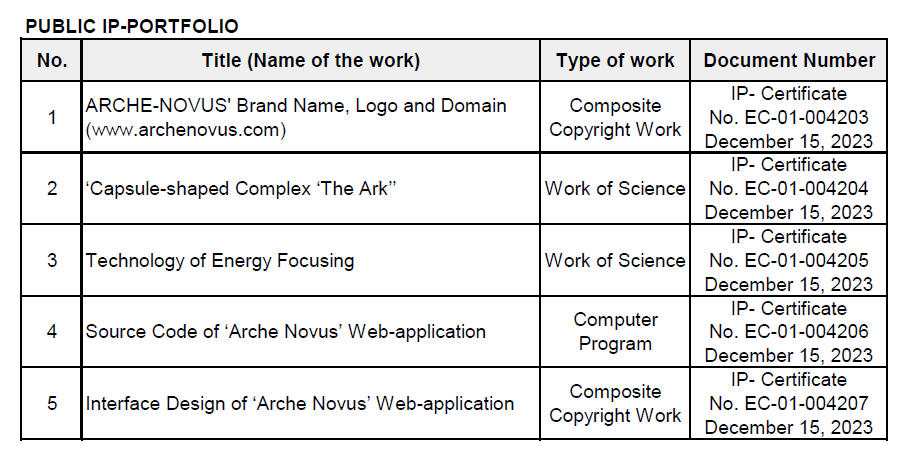 Consolidated Composite Copyright Work: 'Arche Novus' Business Technologies and Intellectual Assets