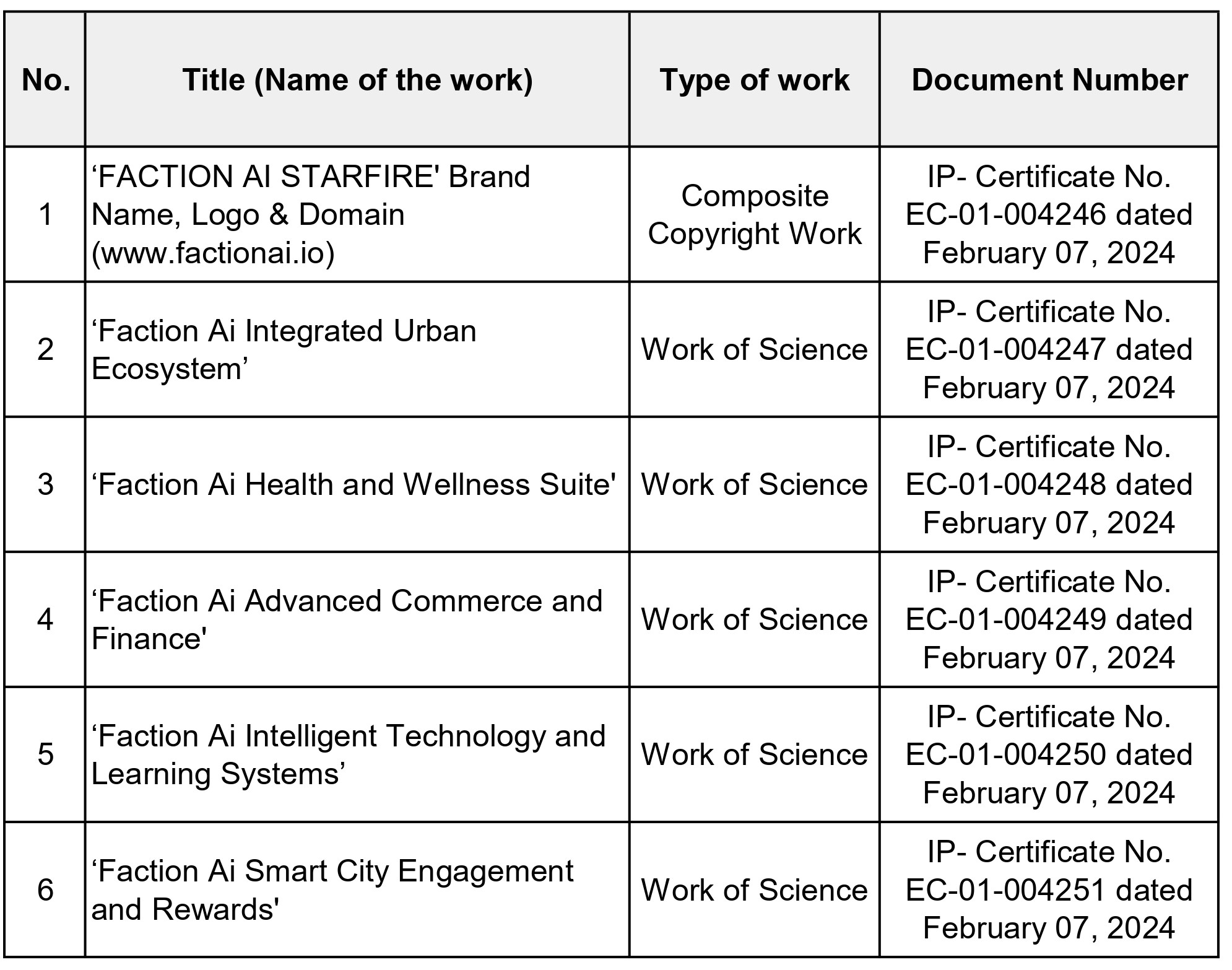 Consolidated Composite Copyright Work: Business Technologies and Intellectual Assets of ‘FACTION AI STARFIRE' Business Project