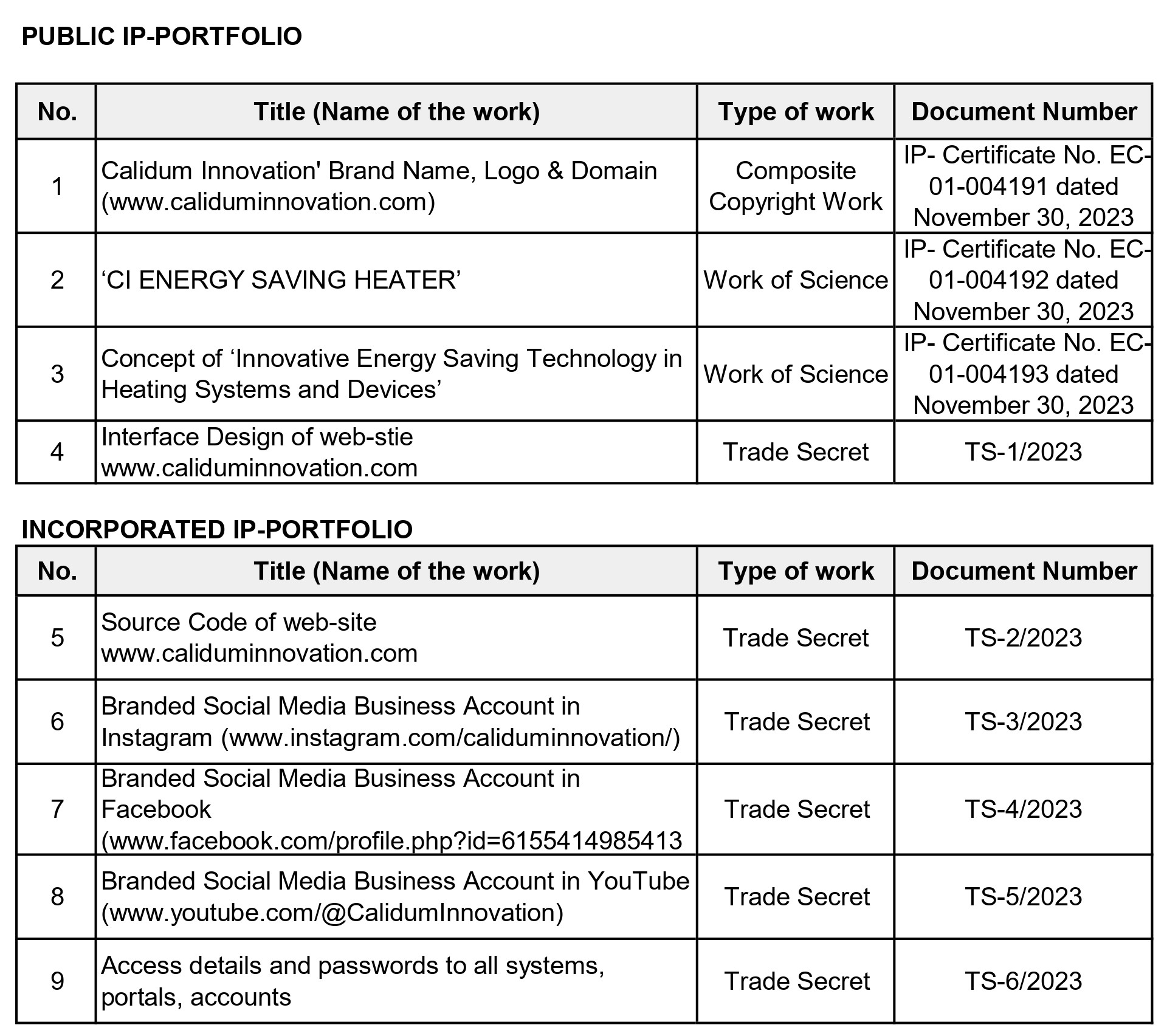 Consolidated Composite Copyright Work: 'Calidum Innovation' Business Technologies and Intellectual Assets