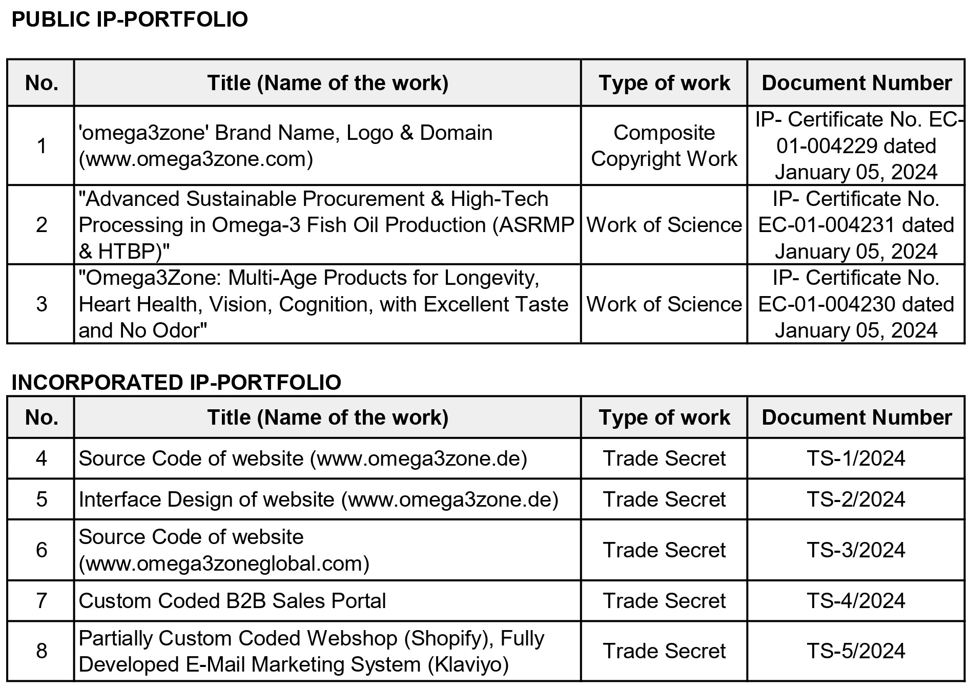 Consolidated Composite Copyright Work: "omega3zone" Business Technologies and Intellectual Assets