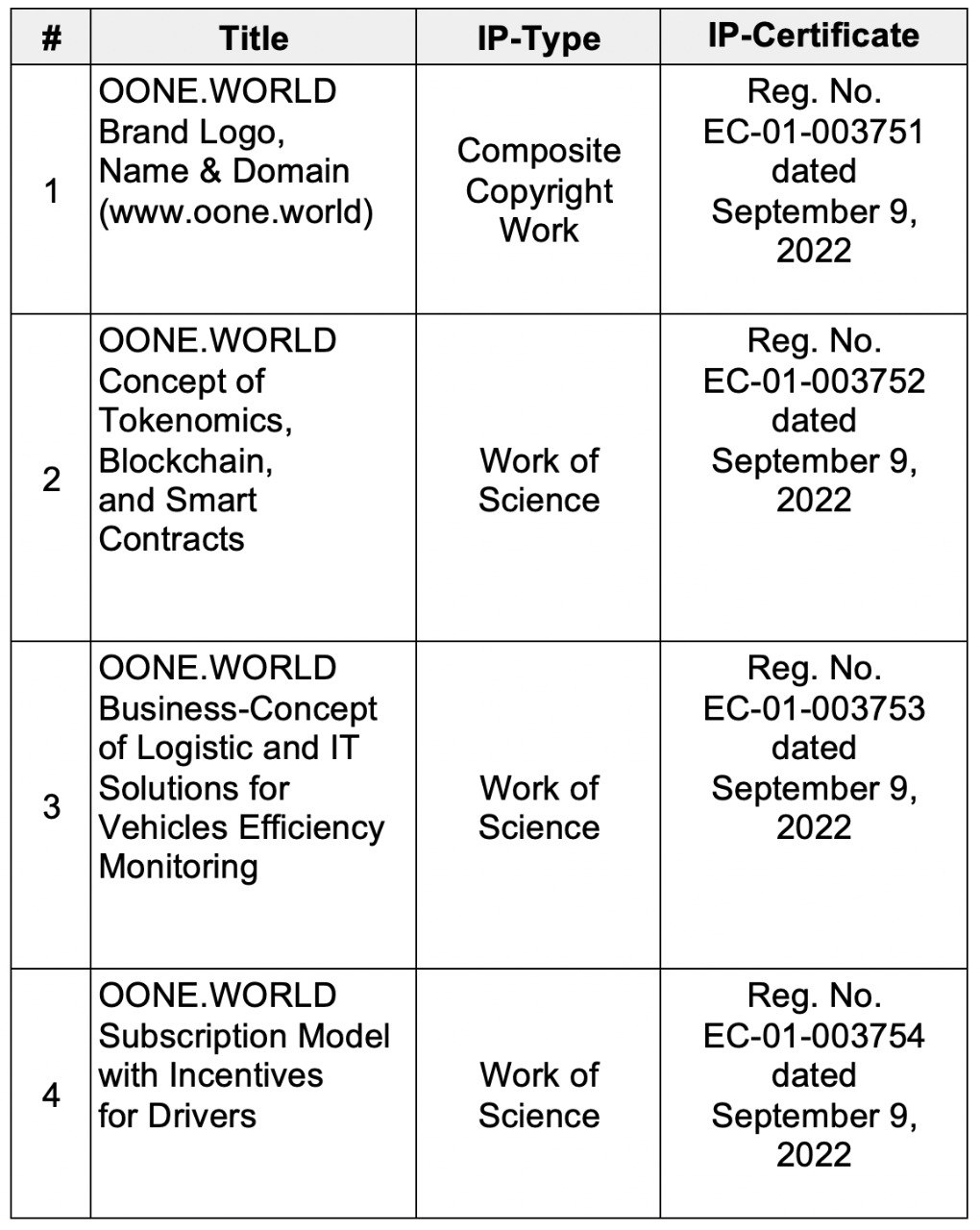 Consolidated Composite Copyright Work: OONE.WORLD Business Technologies and Intellectual Assets