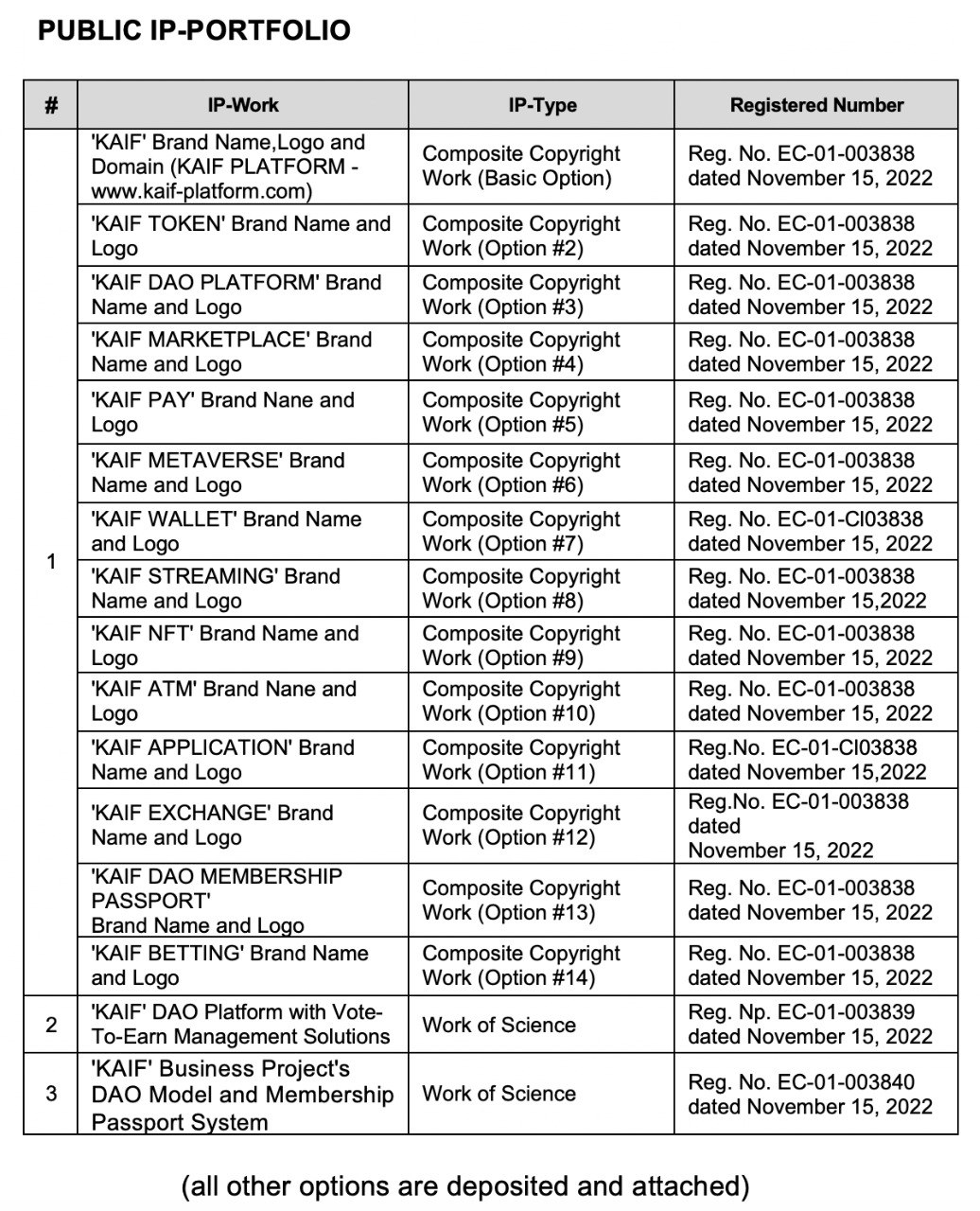 | Title of Work | ‘KAIF PLATFORM Business Technologies and Intellectual Assets’ | ||