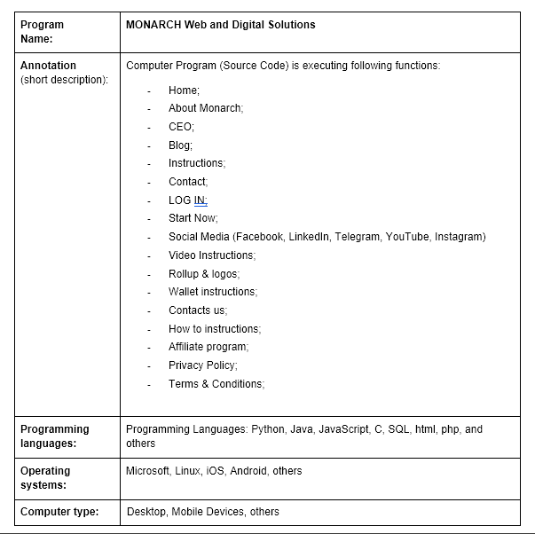 Computer Program (Source Code): ‘MONARCH’ Web and Digital Solutions