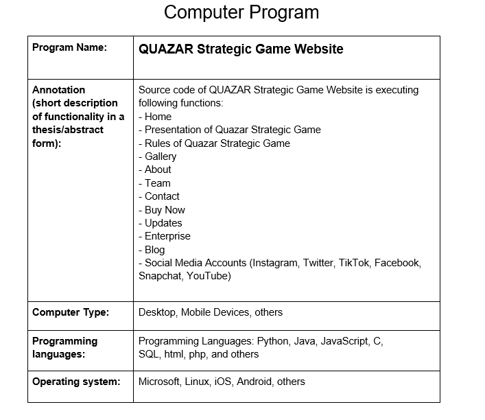 Computer Program: QUAZAR Strategic Game Website Source Code