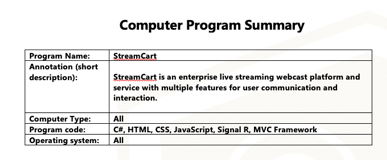 Software program: StreamCart.com Software program source code