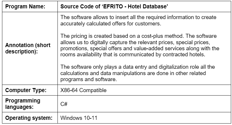 Software Program: Source Code of 'EFRITO - Hotel Database'