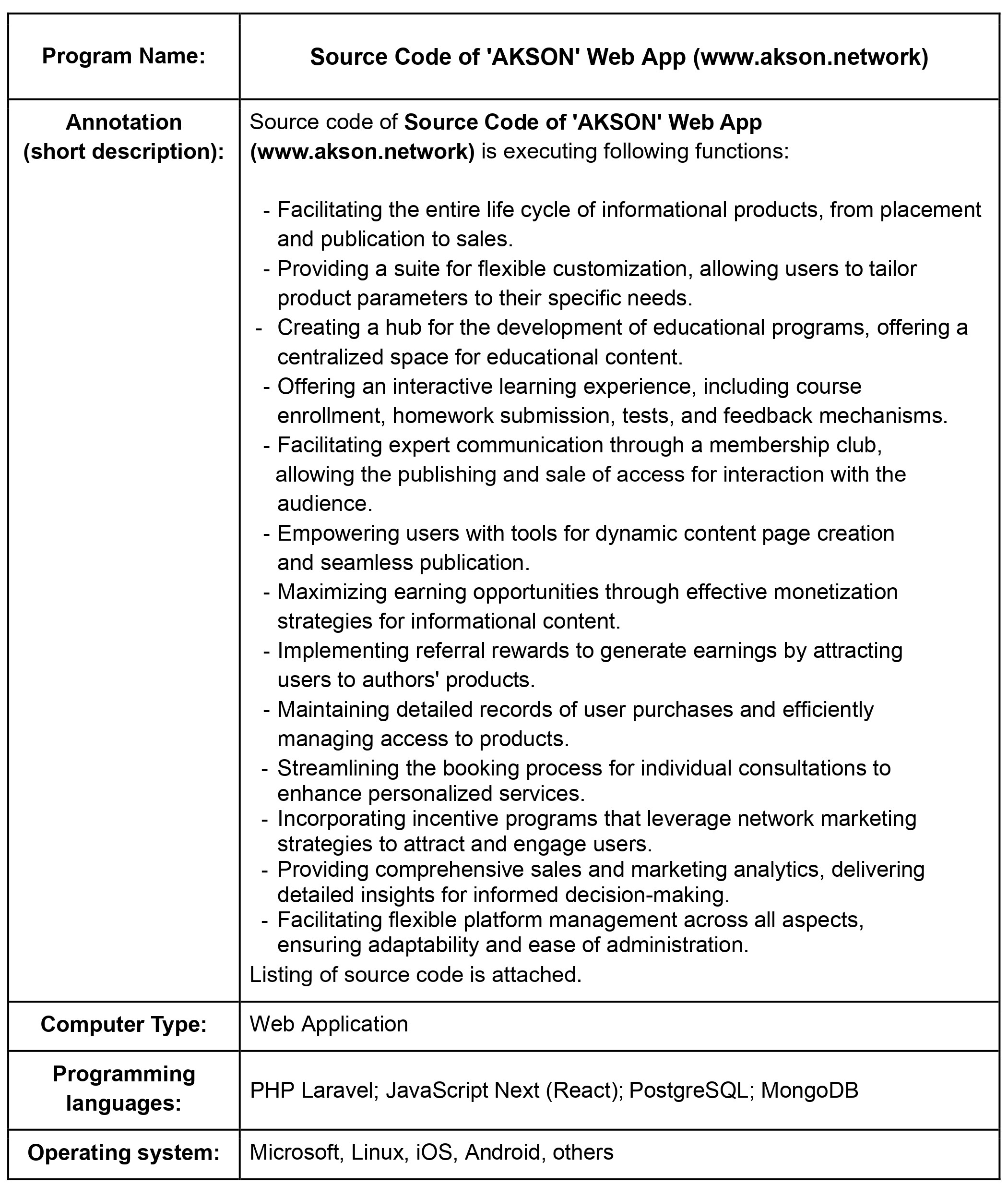 Computer Program: Source Code of 'AKSON' Web App (www.akson.network)