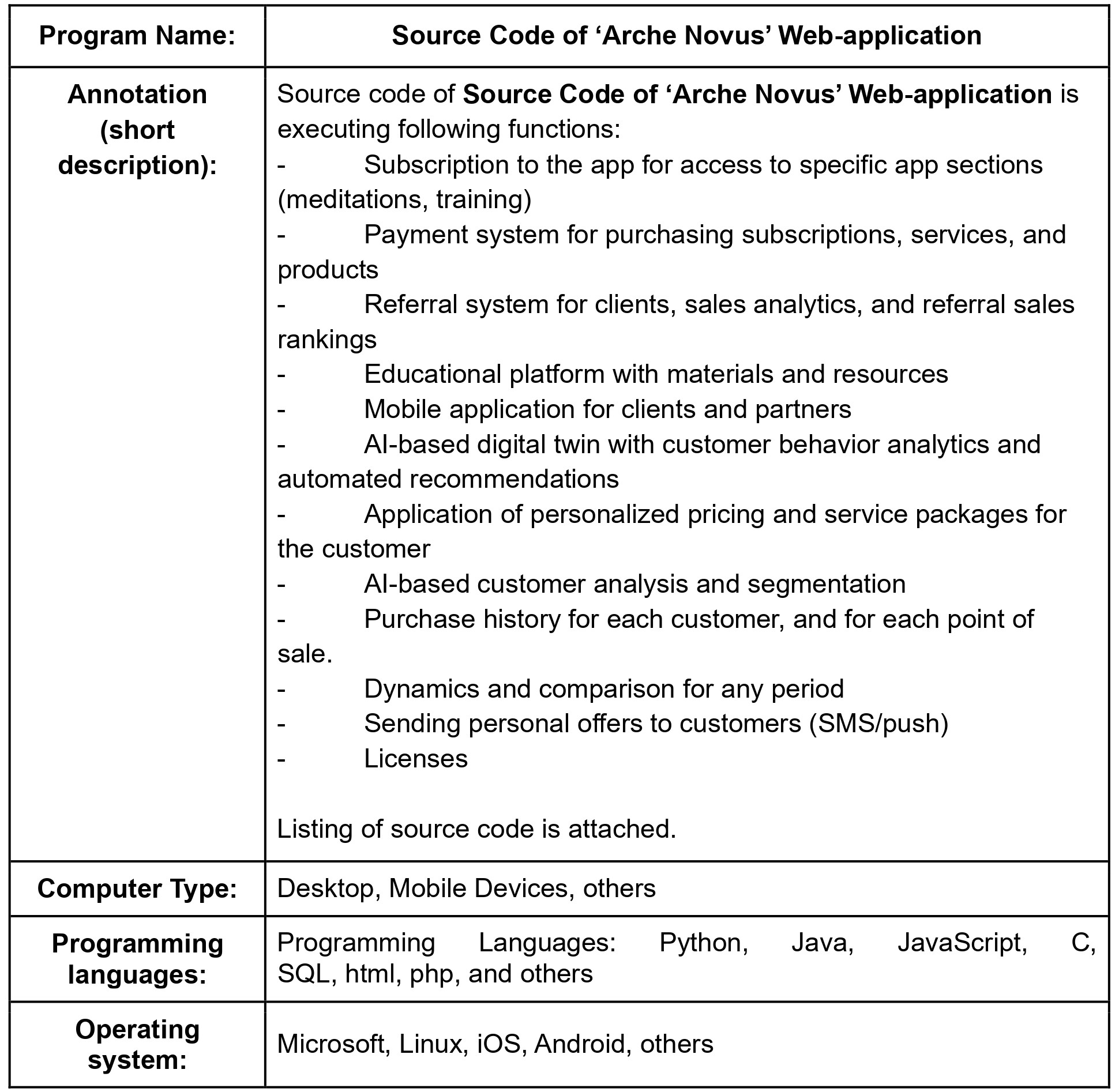 Computer Program: Source Code of 'Arche Novus' Web-application
