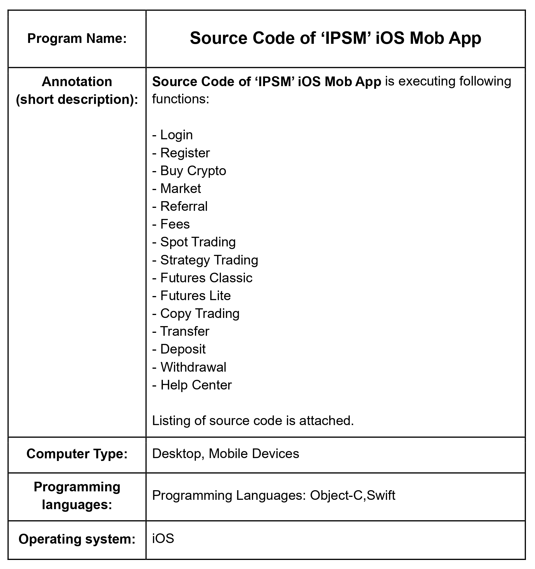 Computer Program: Source Code of ‘IPSM’ iOS Mob App