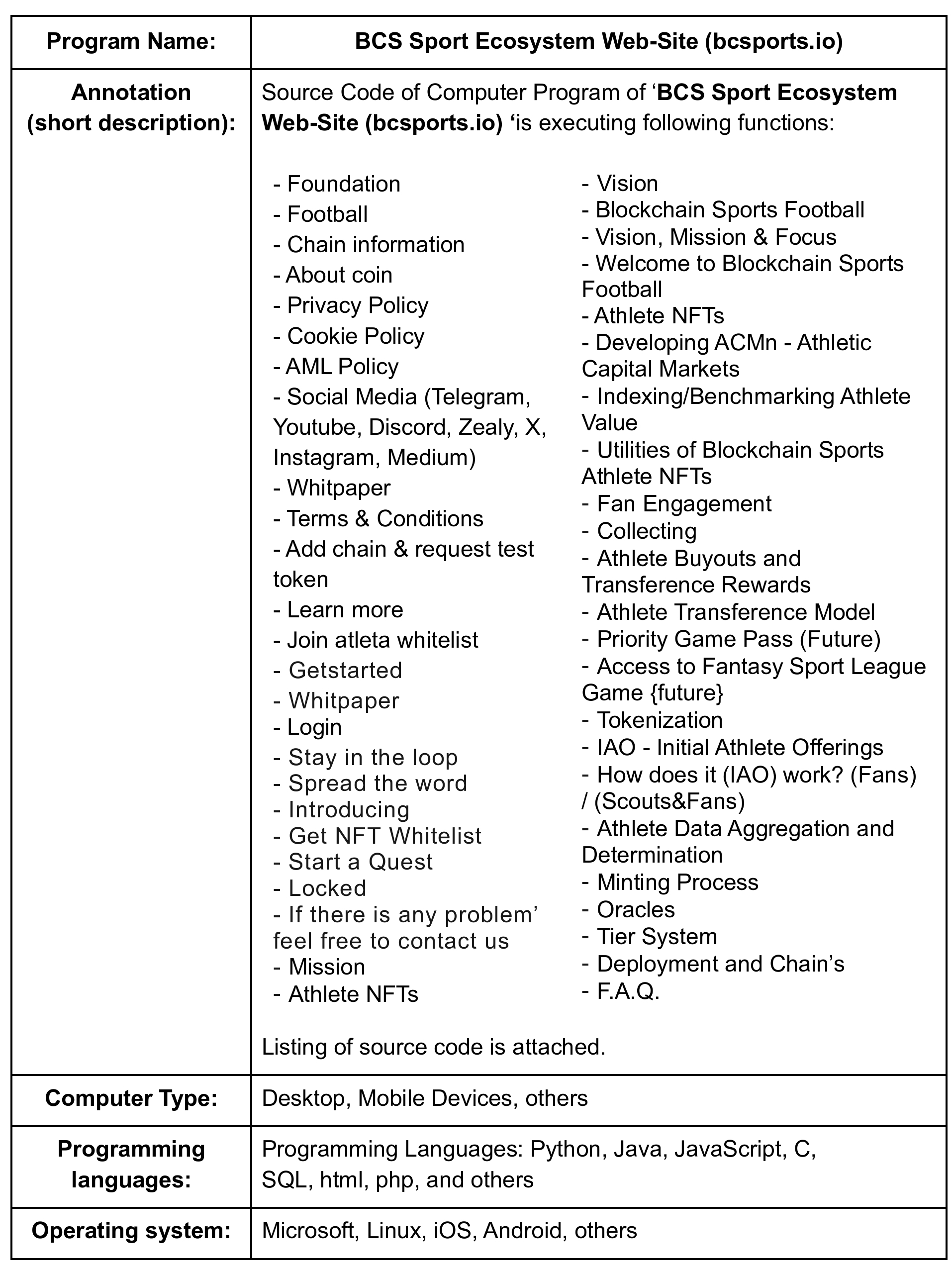 Source Code: 'BCS Sport Ecosystem Web-Site (bcsports.Io)'