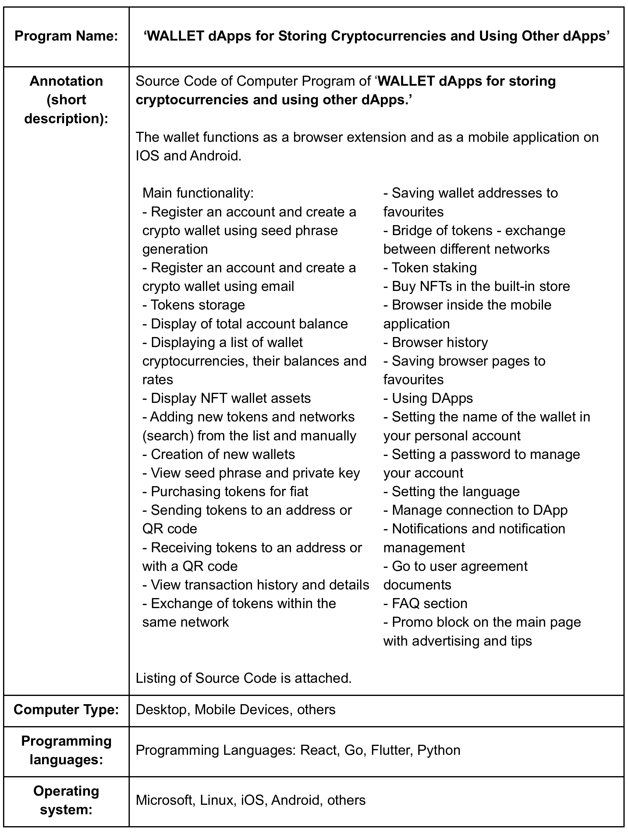 Source Code: 'WALLET Dapps for Storing Cryptocurrencies and Using Other Dapps'