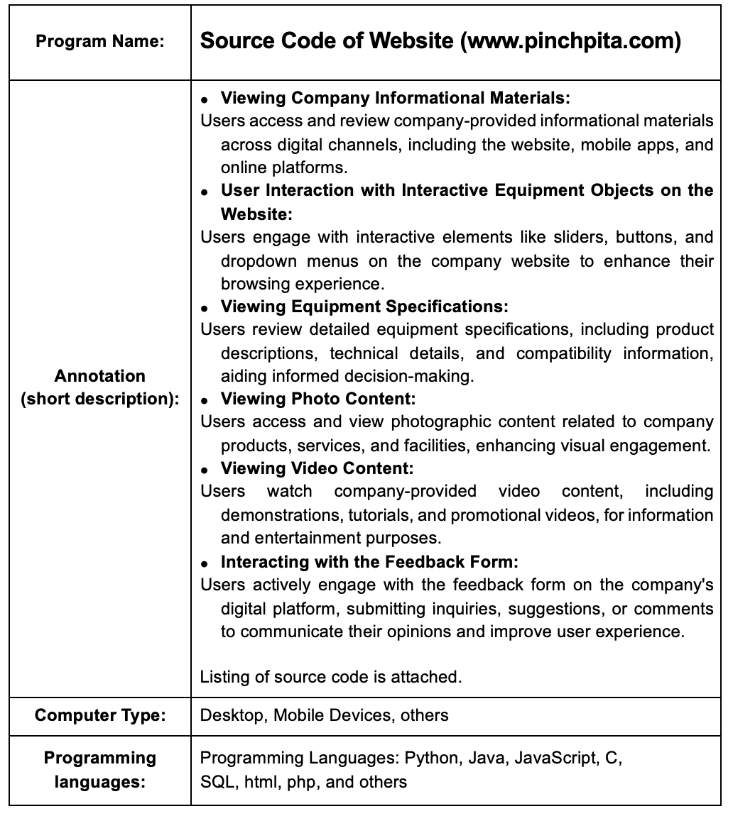 Computer Program: Source Code of Web-Site (www.pinchpita.com)