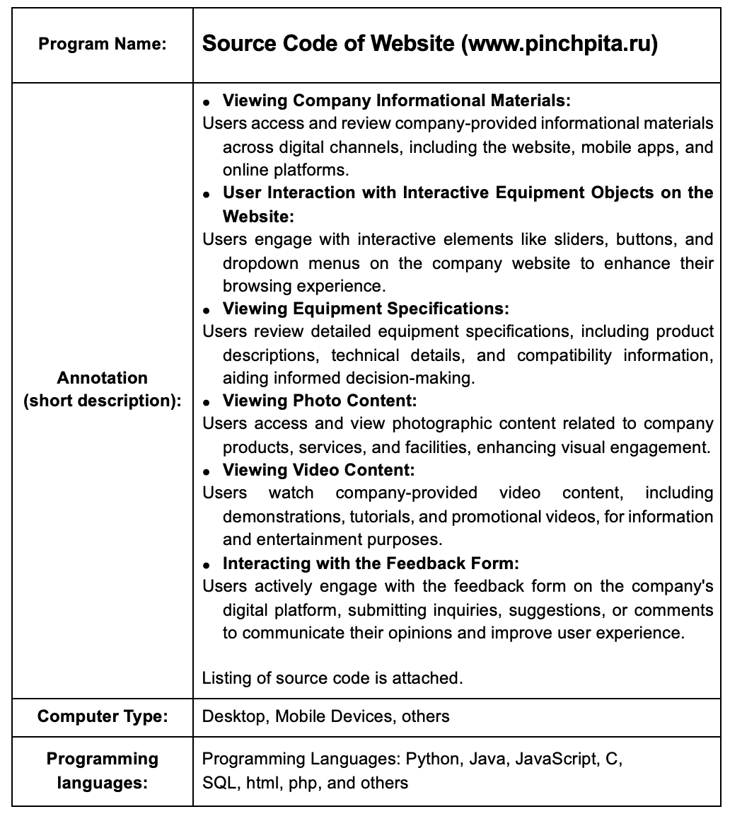 Computer Program: Source Code of Web-Site (www.pinchpita.ru)