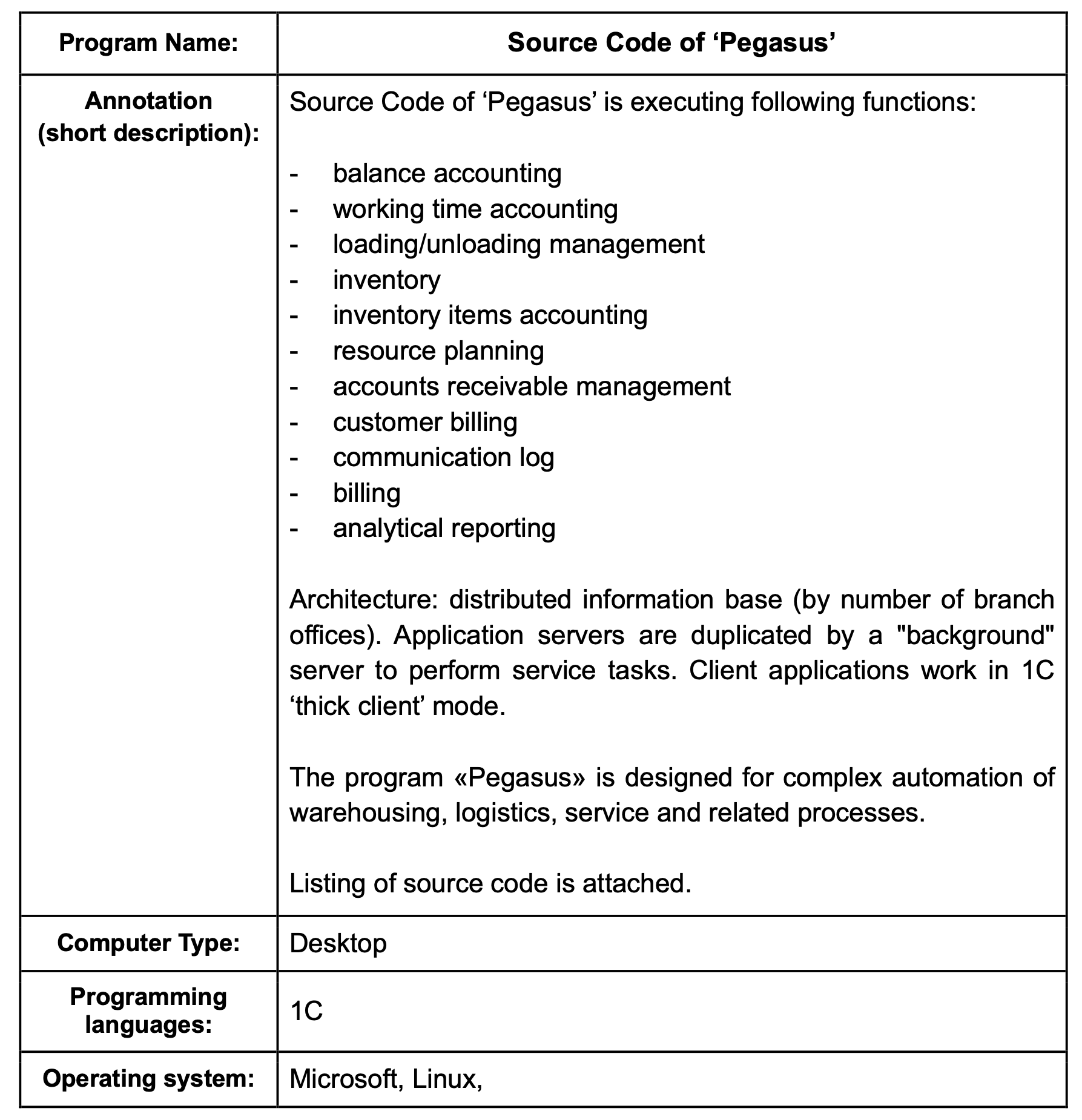 Computer Program: Source Code of 'Pegasus'