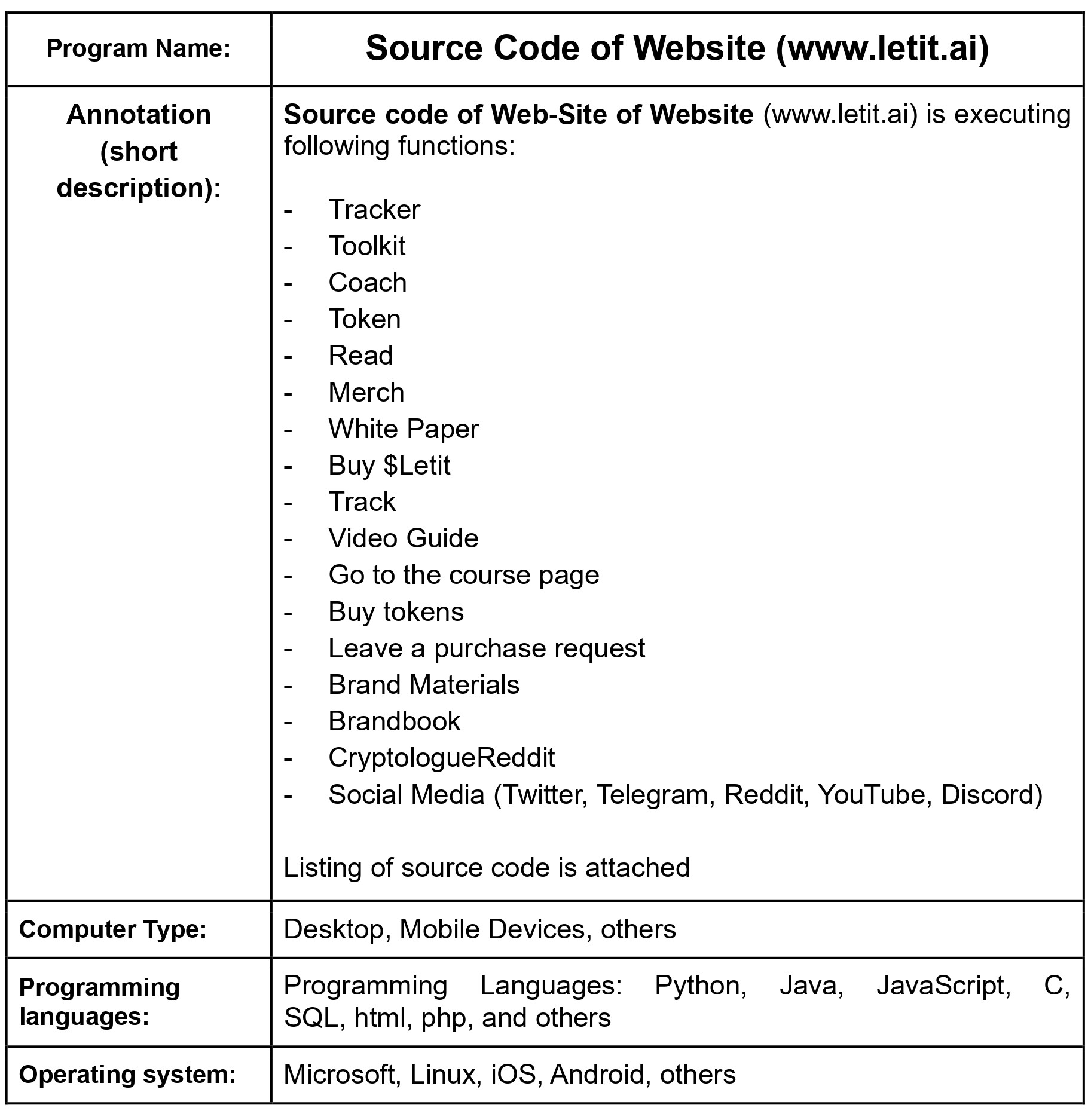 | Title of Work | Source Code of Website (www.letit.ai) | ||