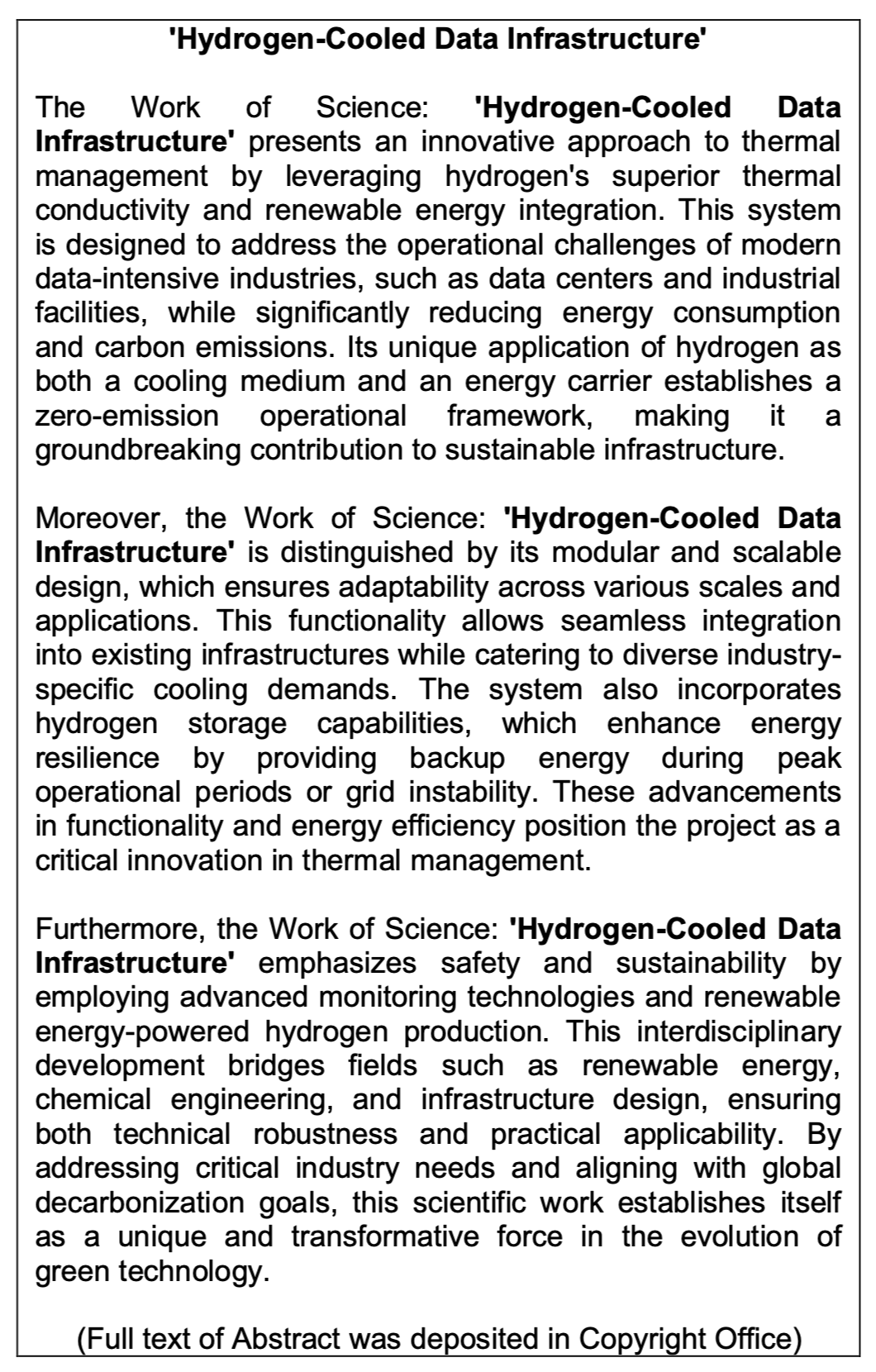 Work of Science: 'Hydrogen-Cooled Data Infrastructure'
