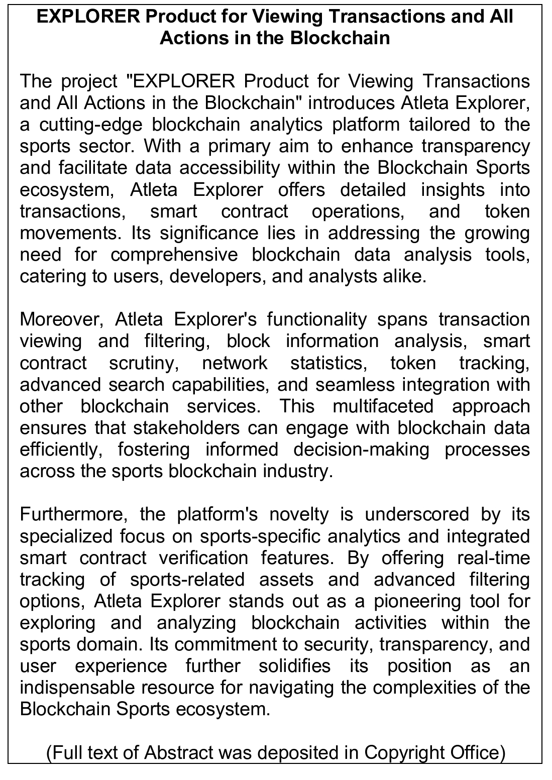 Work of Science: 'EXPLORER Product for Viewing Transactions and All Actions in The Blockchain'