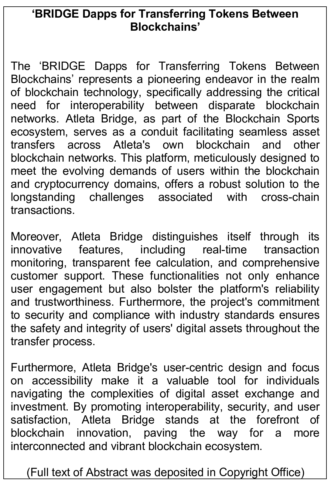 Work of Science: 'BRIDGE Dapps for Transferring Tokens Between Blockchains'