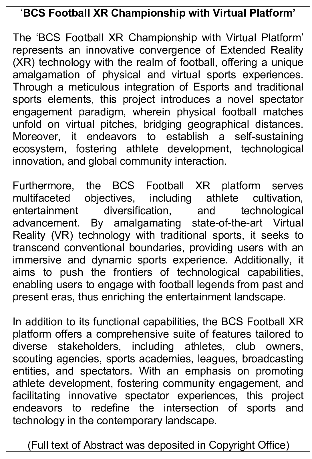 Work of Science: 'BCS Football XR Championship with Virtual Platform'