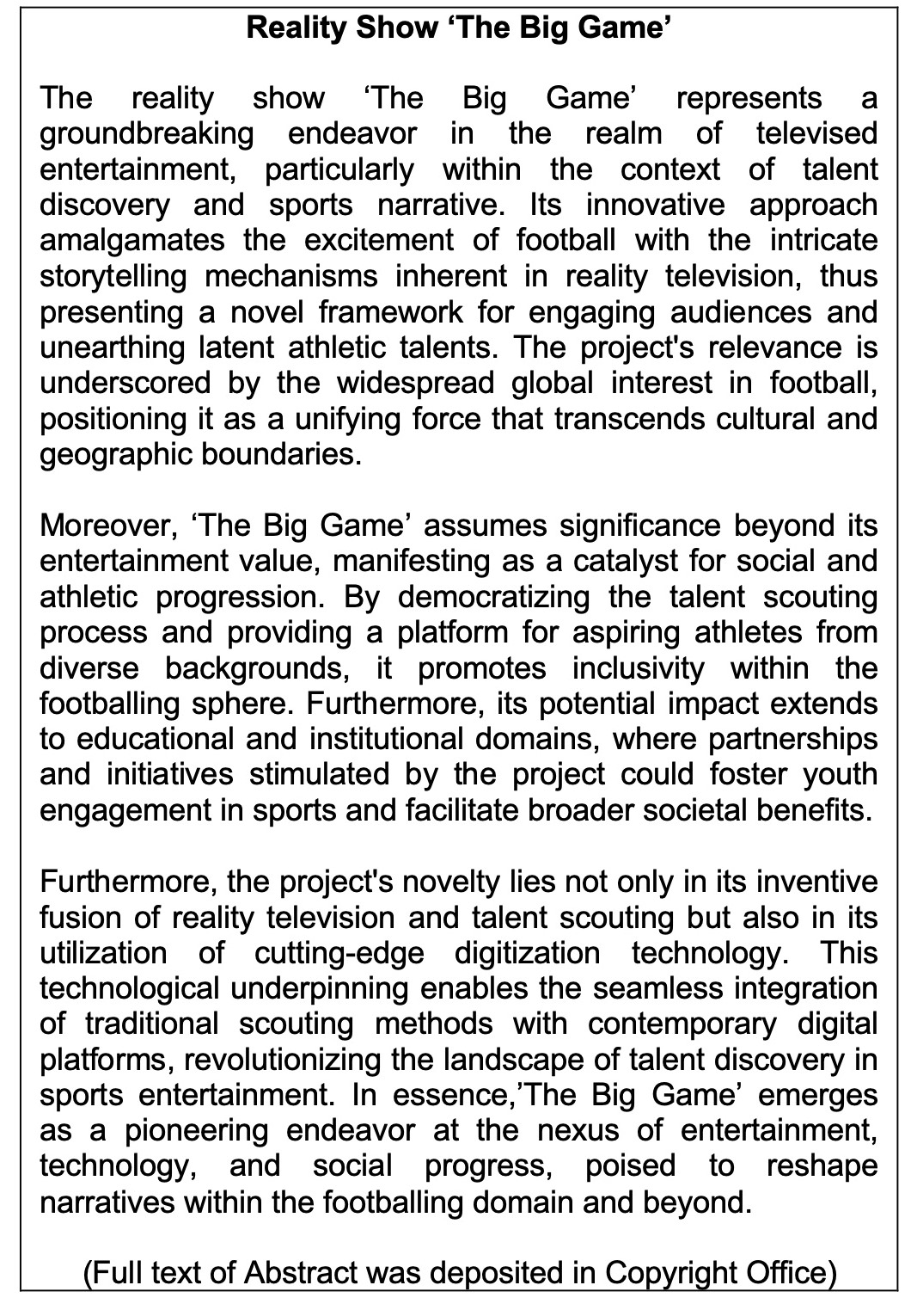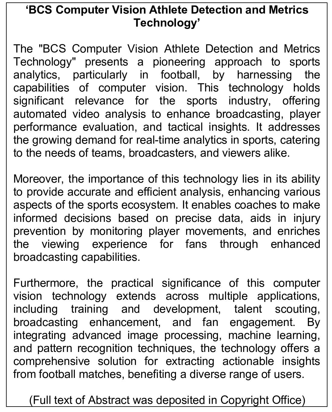 Work of Science: 'BCS Computer Vision Athlete Detection and Metrics Technology'