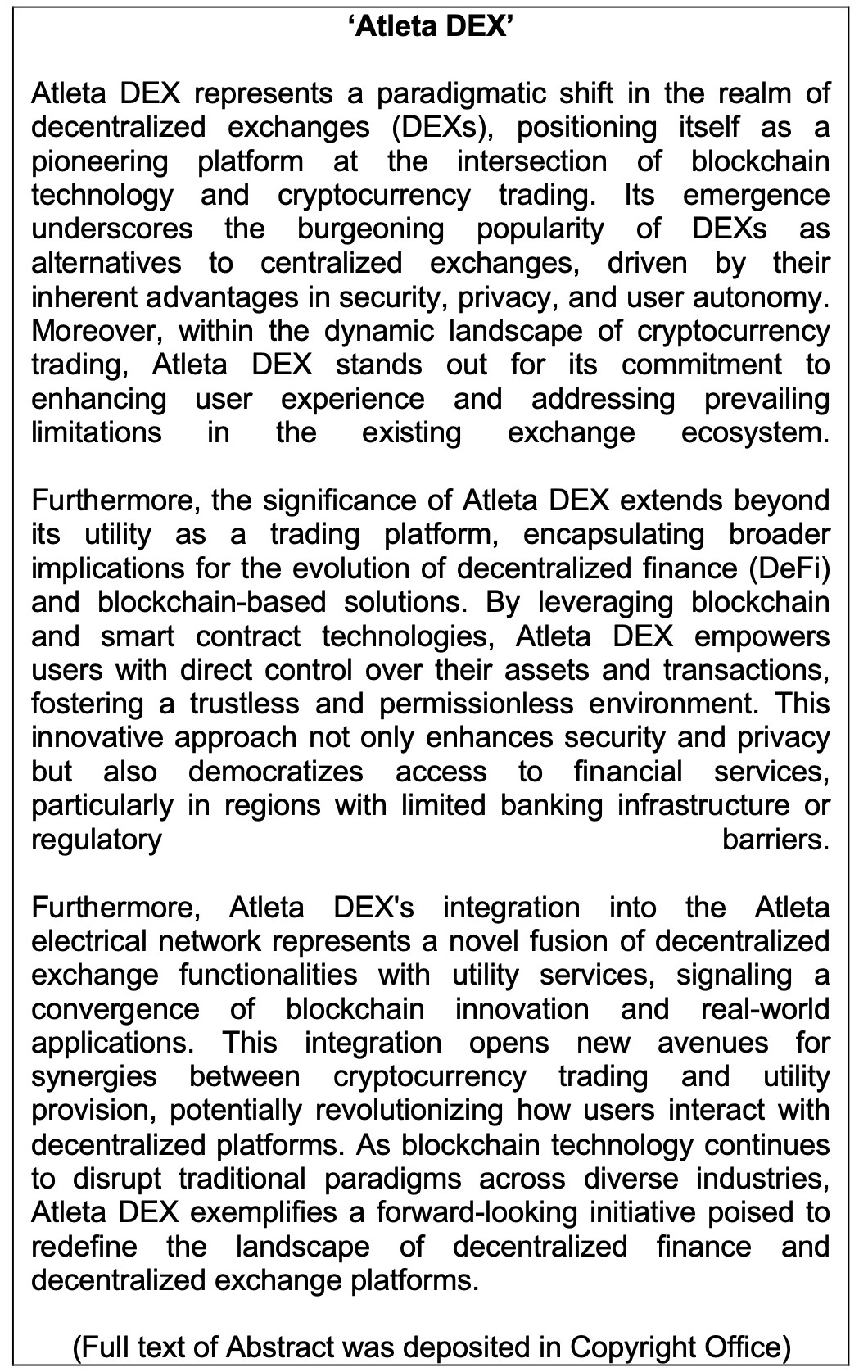 Work of Science: 'Atleta DEX'