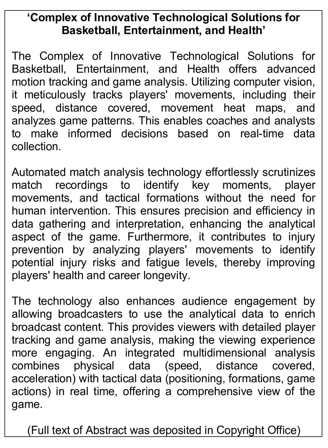 Work of Science: 'Complex of Innovative Technological Solutions for Basketball, Entertainment, and Health’