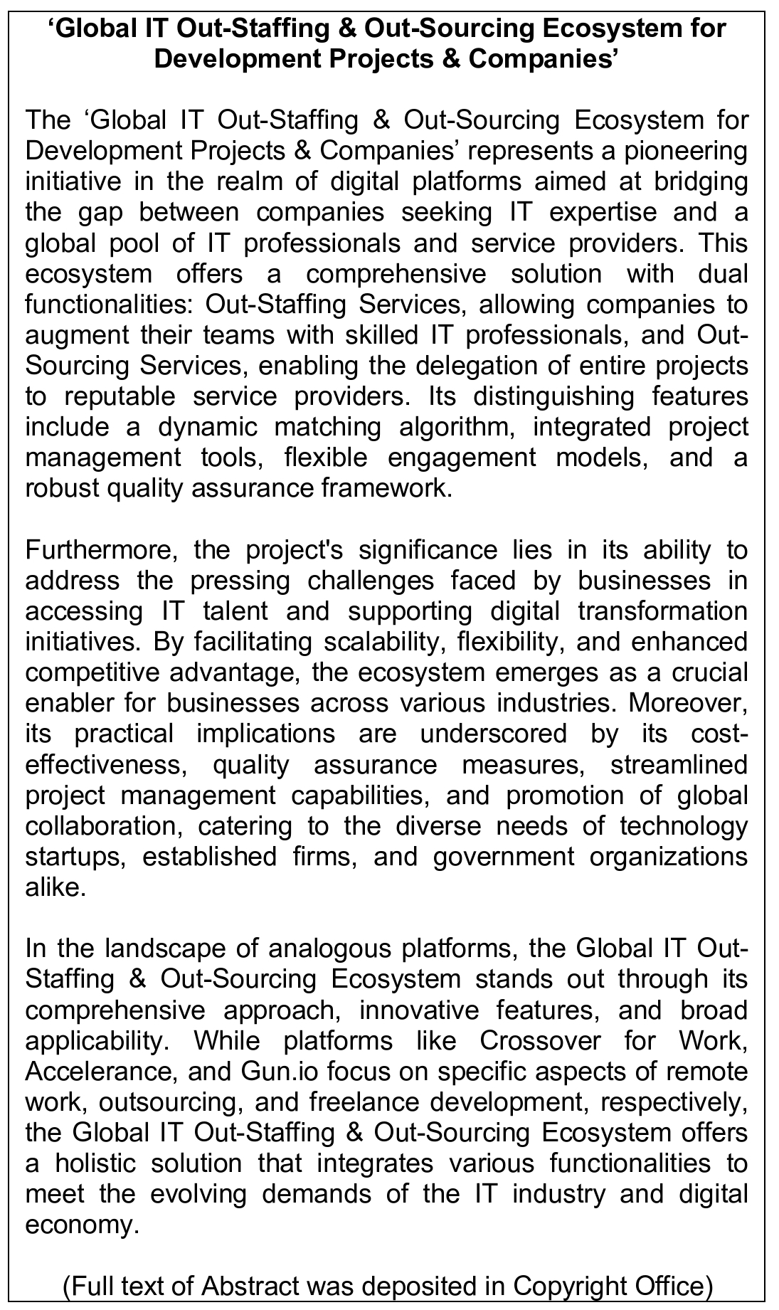Work of Science: 'Global IT Out-Staffing & Out-Sourcing Ecosystem for Development Projects & Companies'