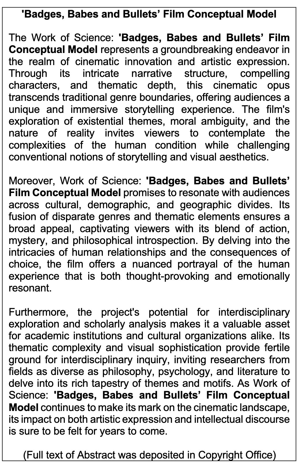 Work of Science: 'Badges, Babes and Bullets' Film Conceptual Model