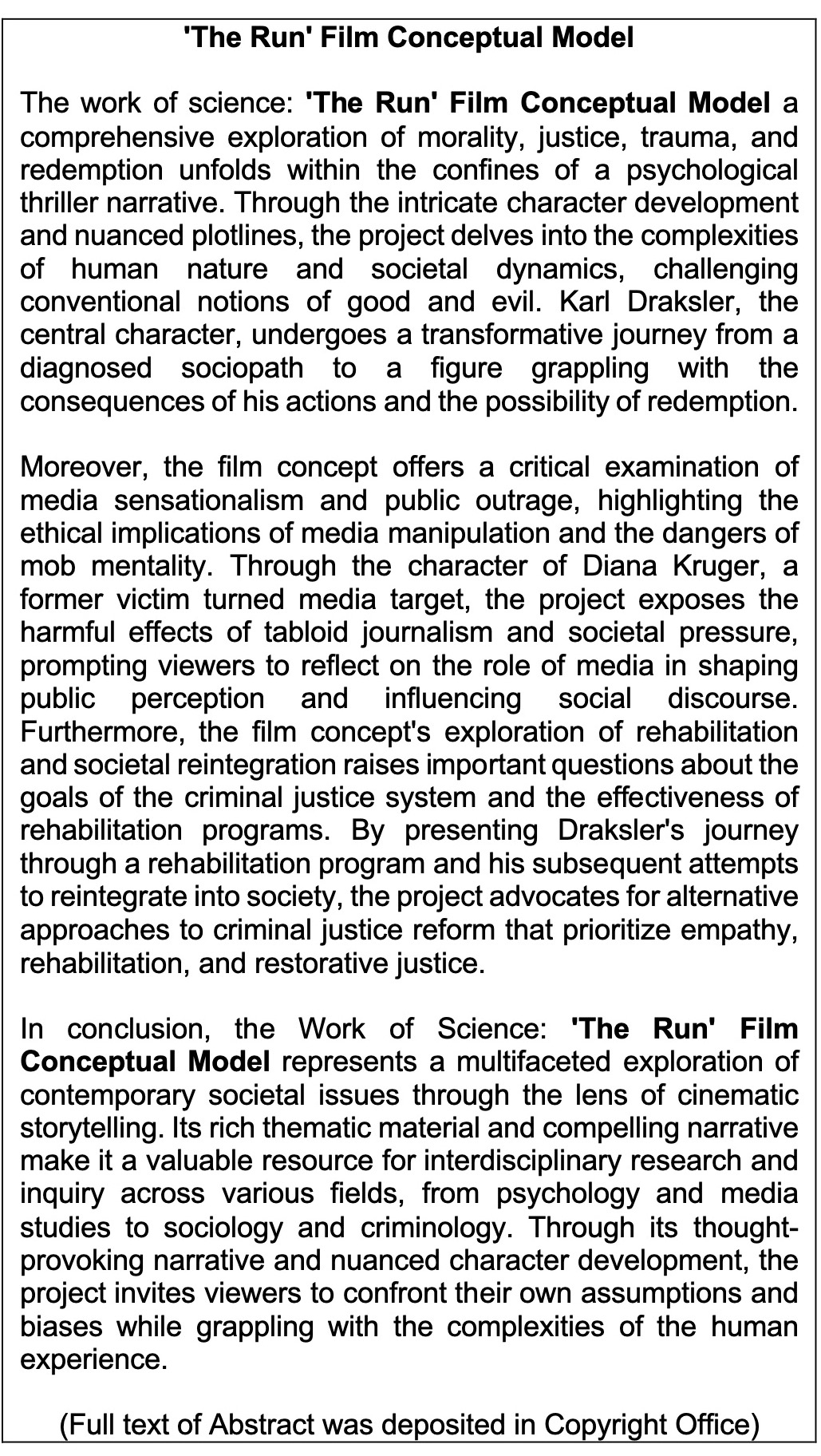 Work of Science: 'The Run' Film Conceptual Model