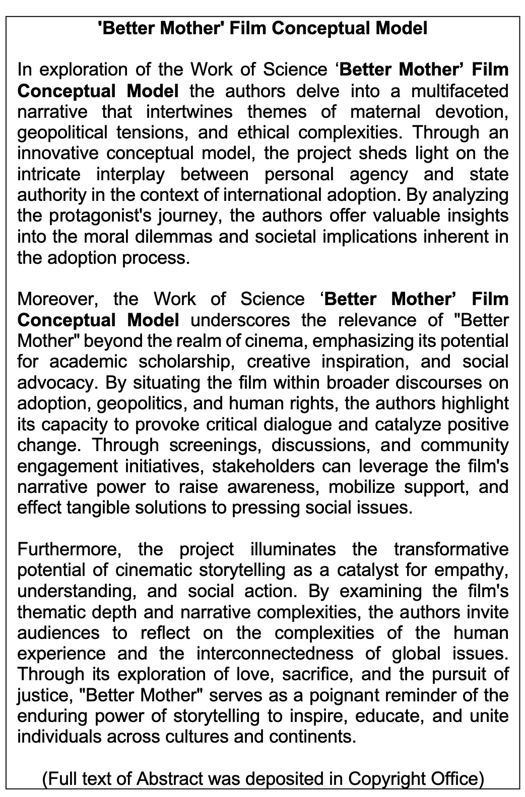 Work of Science: 'Better Mother' Film Conceptual Model