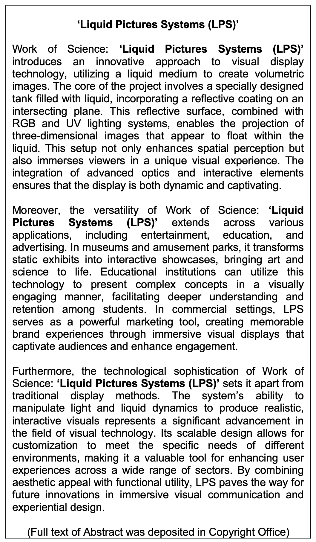 Work of Science: 'Liquid Pictures Systems (LPS)'