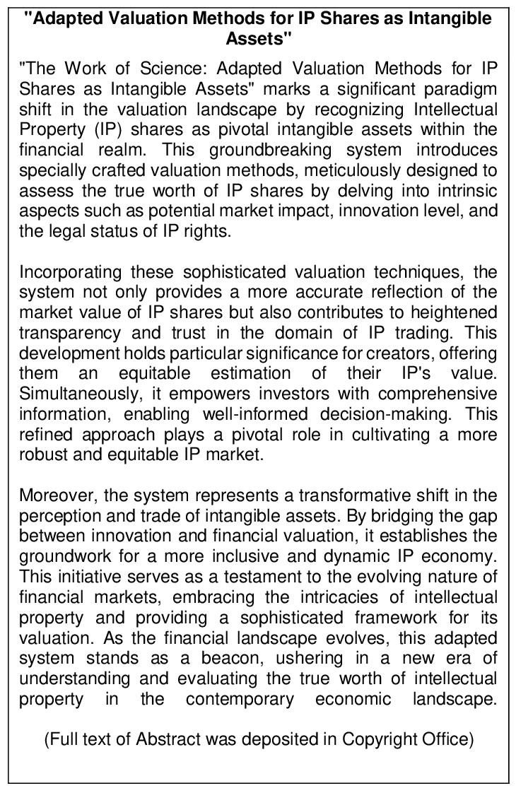 Work of Science: 'Adapted Valuation Methods for IP Shares as Intangible Assets'