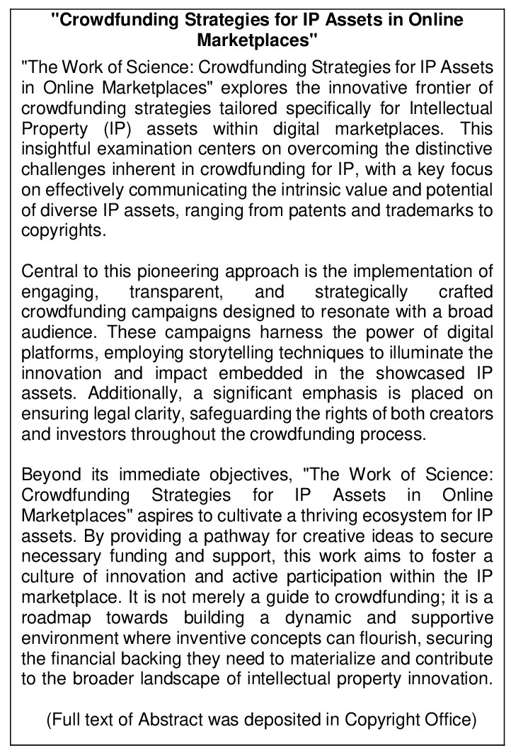 Work of Science: 'Crowdfunding Strategies for IP Assets in Online Marketplaces'