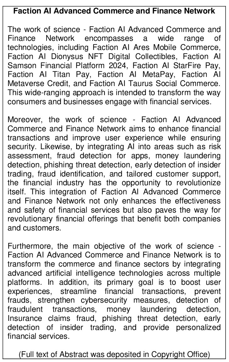 Work of Science: ‘Faction Ai Advanced Commerce and Finance'