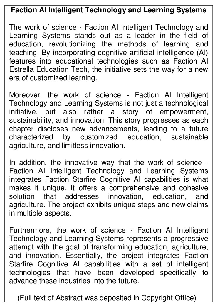 Work of Science: ‘Faction Ai Intelligent Technology and Learning Systems’