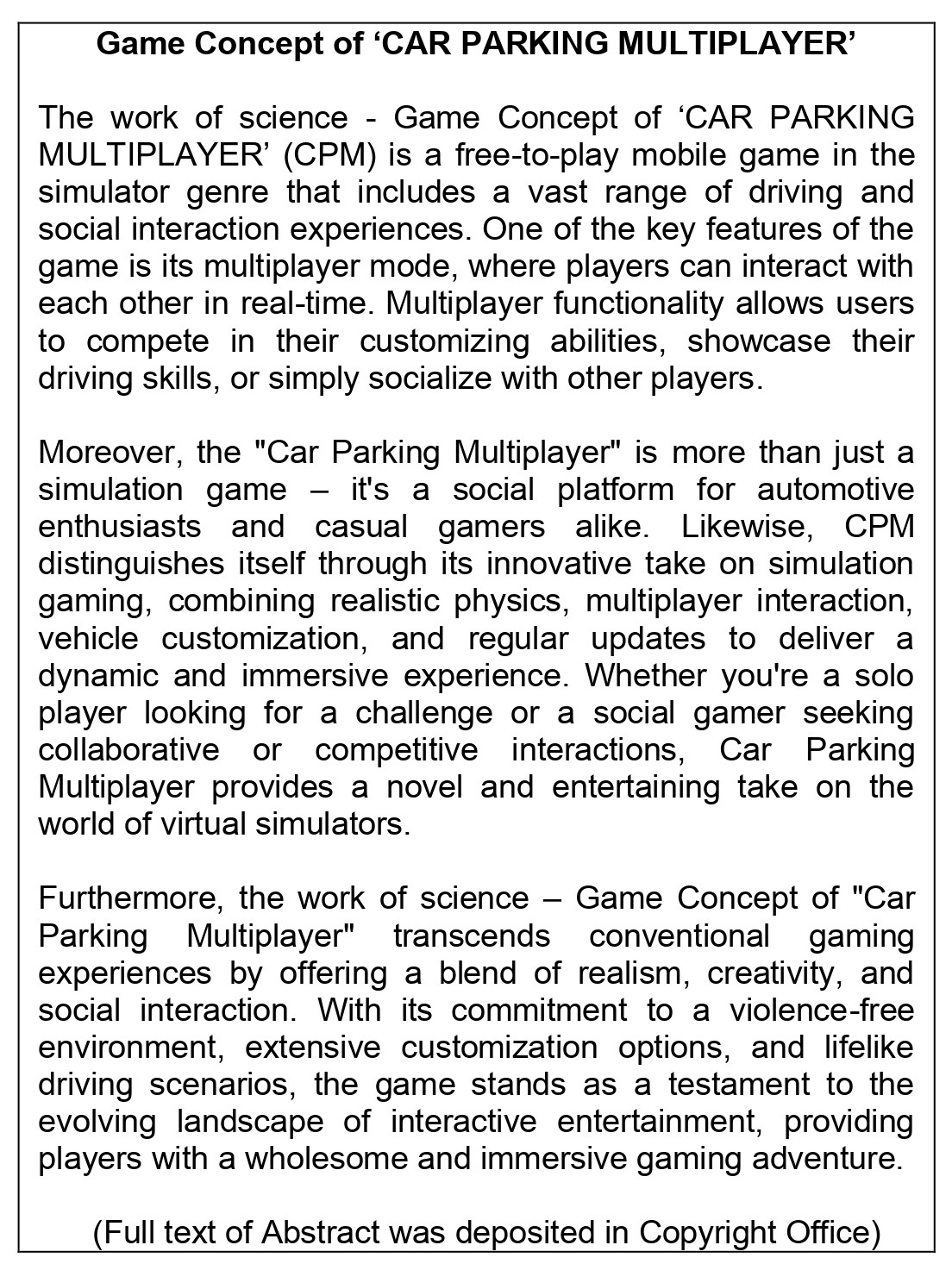 Work of Science: Game Concept of ‘CAR PARKING MULTIPLAYER’