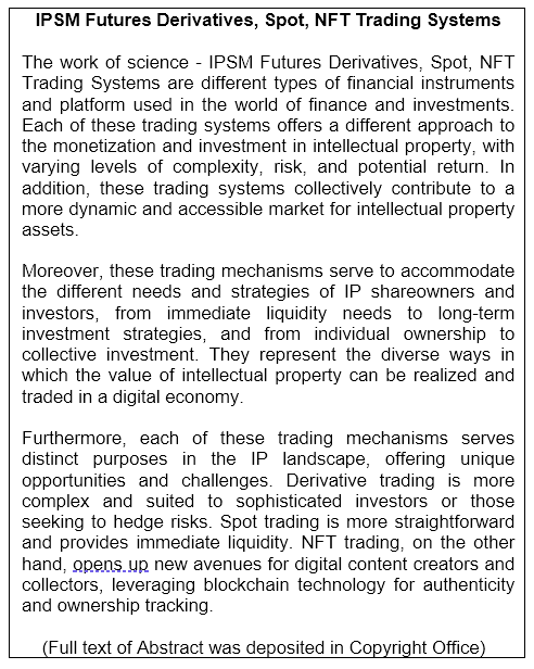 Work of Science: ‘IPSM Futures/Derivatives, Spot, NFT Trading Systems’