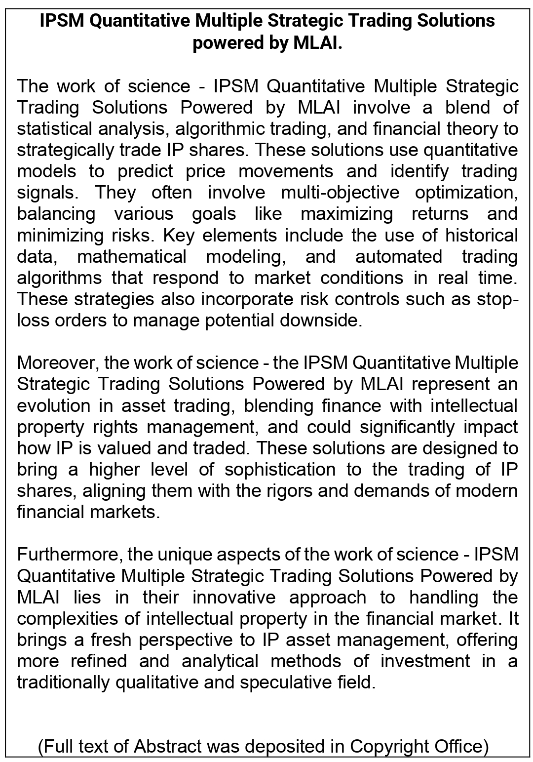 Work of Science: ‘IPSM’ Quantative Multiple Strategic Trading Solutions powered by MLAI