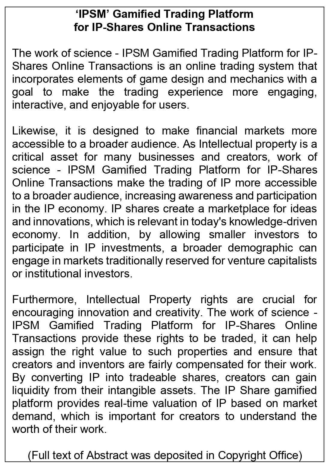 Work of Science: ‘IPSM’ Gamified Trading Platform for IP-Shares Online Transactions
