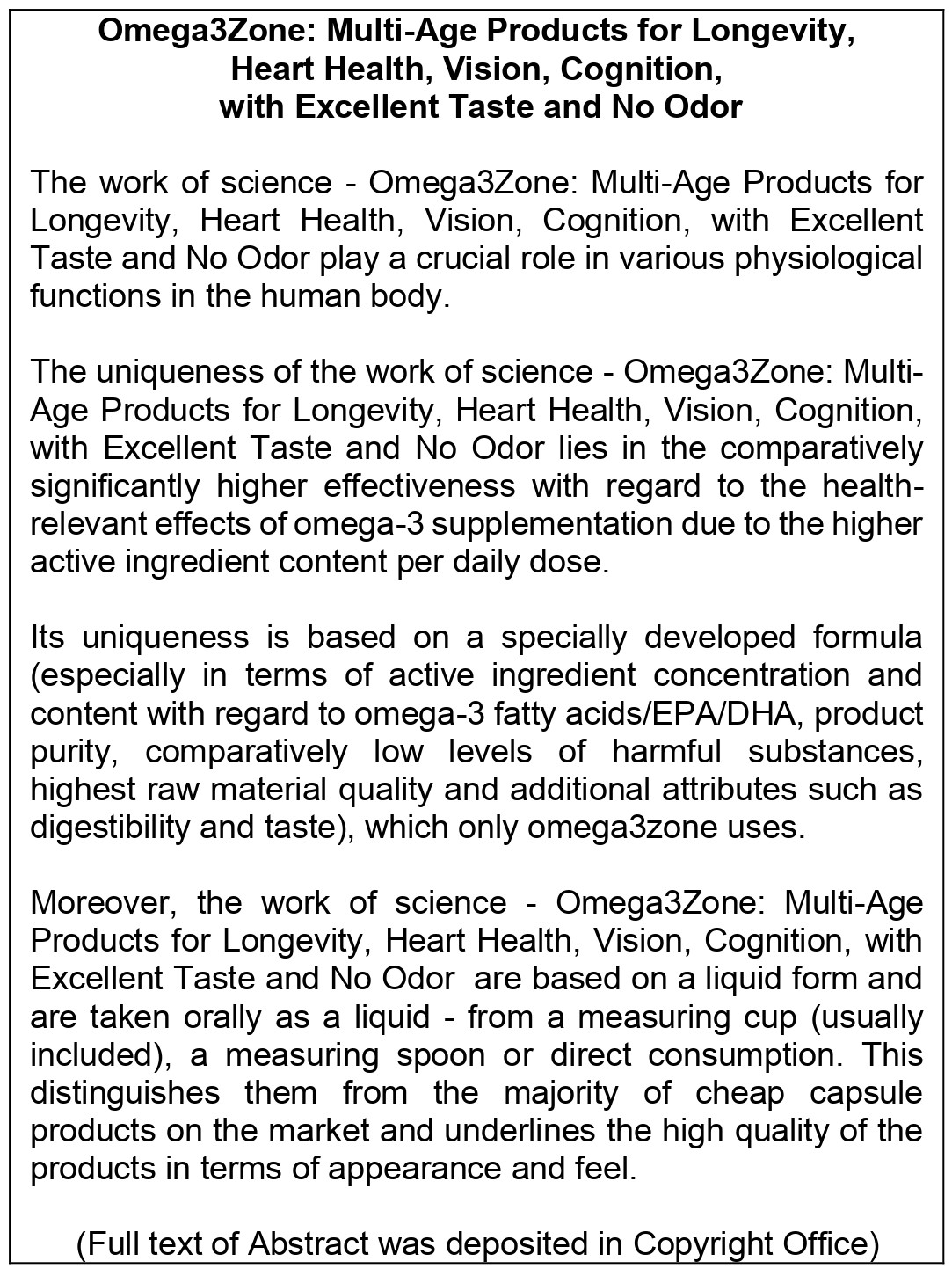 Work of Science: «Omega3Zone: Multi-Age Products for Longevity, Heart Health, Vision, Cognition, with Excellent Taste and No Odor»