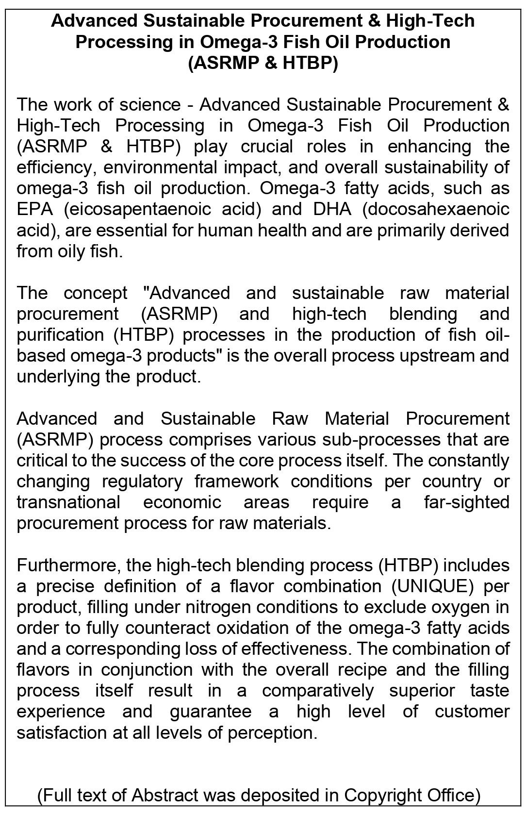 Work of Science: «Advanced Sustainable Procurement & High-Tech Processing in Omega-3 Fish Oil Production (ASRMP & HTBP)»